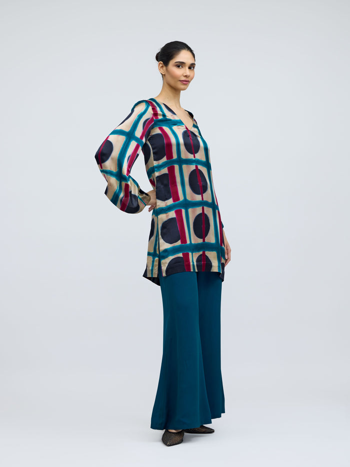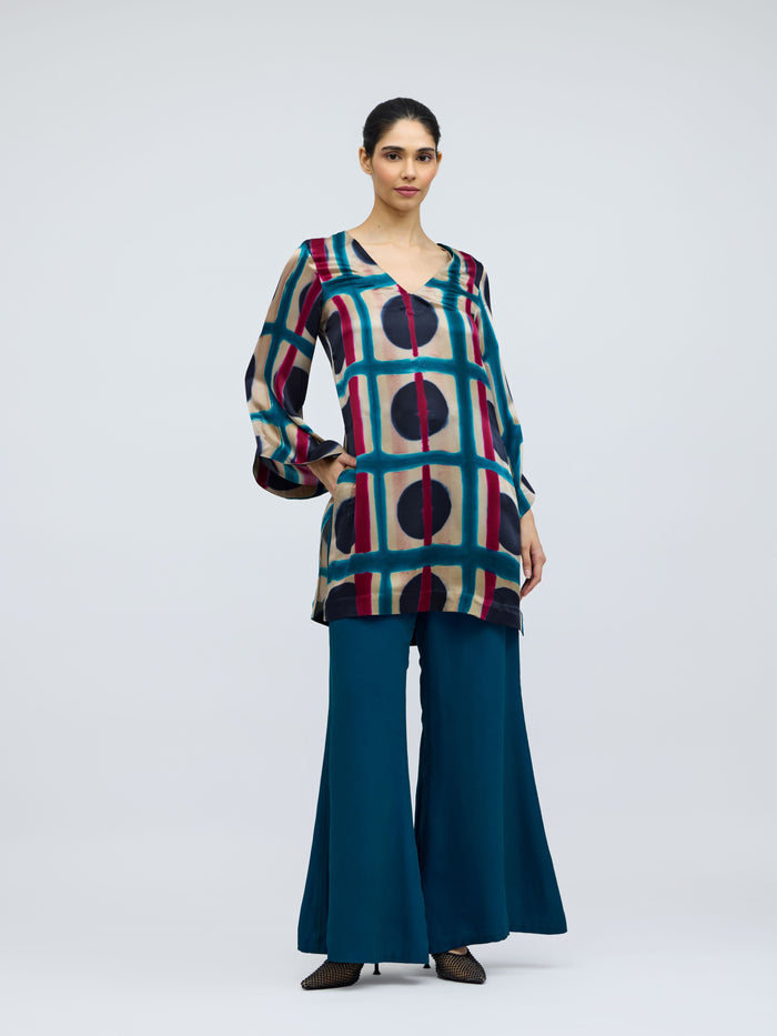Bijlee Resist Dyed Silk Top & Georgette Trousers Set
