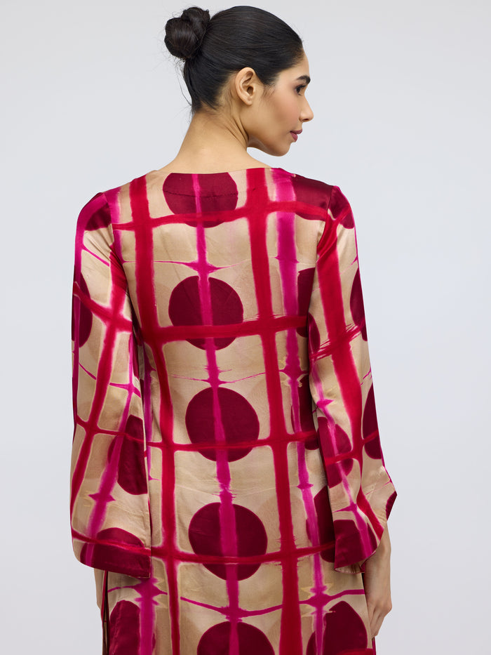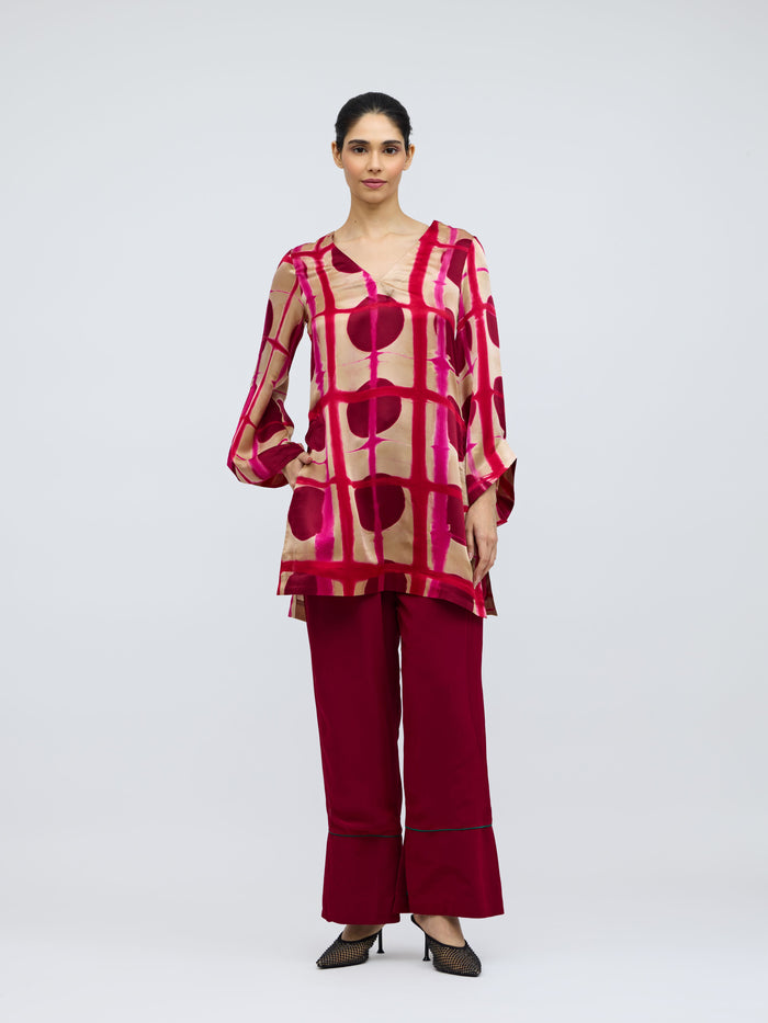 Bijlee Rose Resist Dyed Silk Top & Georgette Trousers Set