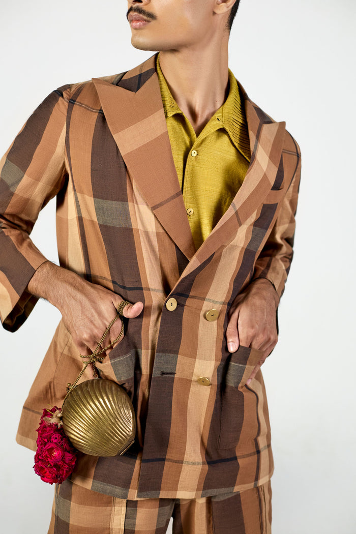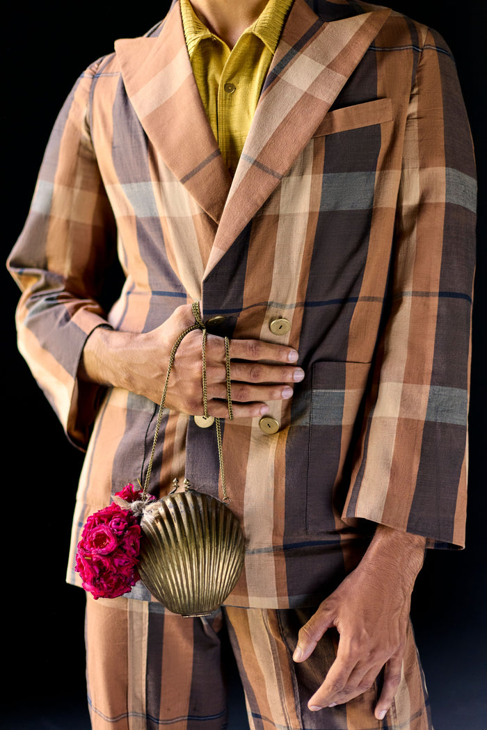 Jackets and overshirts crafted through handspinning and handweaving processes, using yarns made from kala cotton and eri silk.