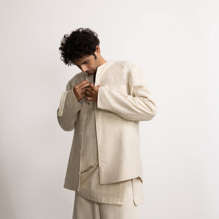 Introducing our exclusive collection, co-created by Quarter in partnership with 7WEAVES. 7WEAVES is an independent organization that specializes in producing hand-spun and hand-woven Eri silk fabric.